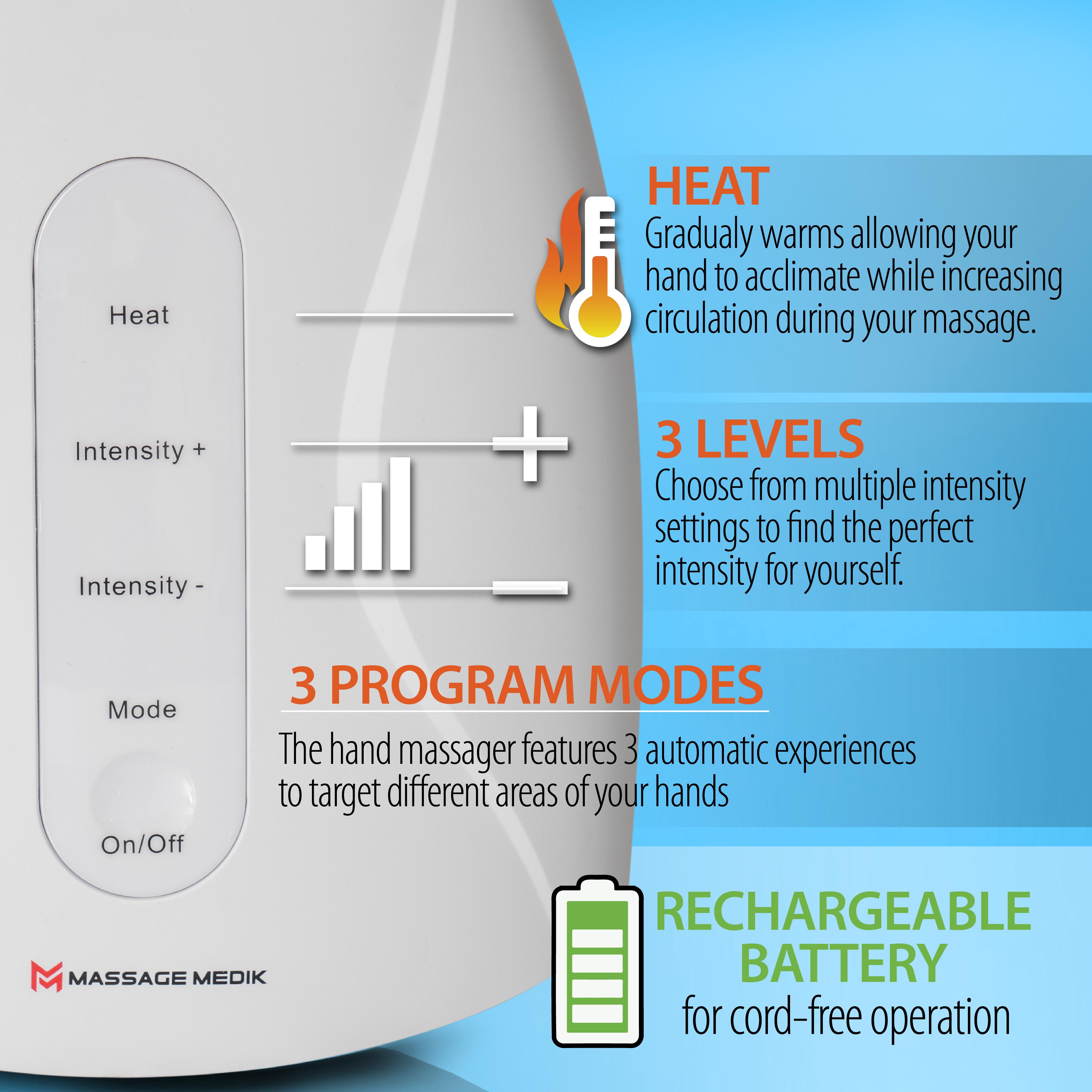 There are many benefits to owning a MASSAGE MEDIK Cordless Compression Heated Hand Massager.