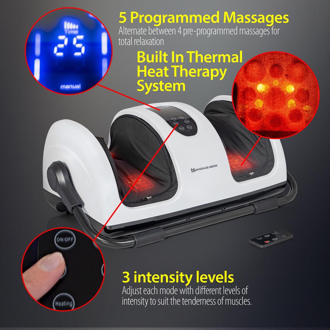 Going to a massage therapist often can add up quickly with a cost of $100.00 or more per visit and finding the time to fit this into our busy schedule can lead to putting our health last. We can help you put your health first by providing you with a product that can meet all of your massage needs and fit into your budget. Massage Medik foot and leg massagers have so many features they can fit all your massage needs without breaking the bank!