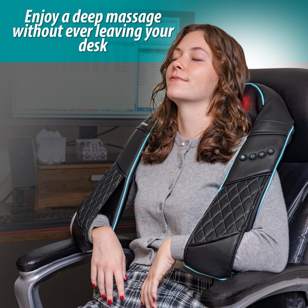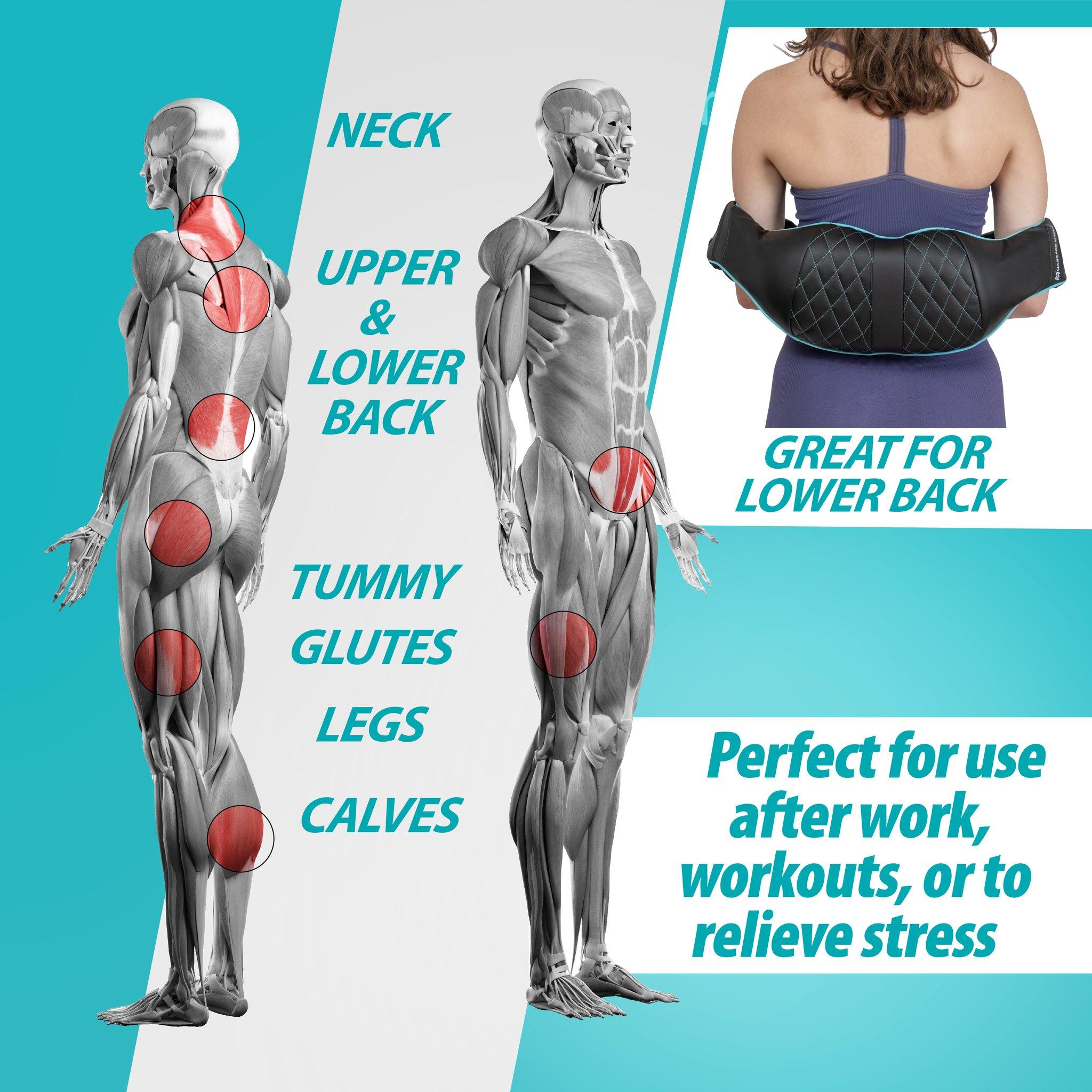 I have chronic neck and back pain. The older I get the more aches and pains I get in other areas. I am a full time nurse so I am on my feet for long 12 hours shifts multiple days a week. This massager is a lifesaver! I have purchased many other items similar and none of them compare to this item. Most items, I find, the kneading balls hurt, or don't rotate appropriately, not with this one! The kneading balls are great for soft or deep pressure depending on your positioning. The cover is soft and the armrests allow me to use leverage for even more deep pressure if needed while being in a comfortable position. The heat option is a great bonus and you can really feel the heat. I have also used it many times for my hip pain. and it works just as well. Totally worth the money. I have recommended this item to multiple family members and would totally buy it again. Love the Teal color.